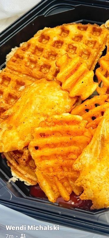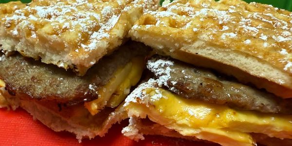 Two crispy waffles layered with smoked ham, turkey, and melted Swiss cheese, grilled to golden perfection. Served with powdered sugar and your choice of raspberry or maple dipping sauce for a perfectly balanced sweet and savory bite.